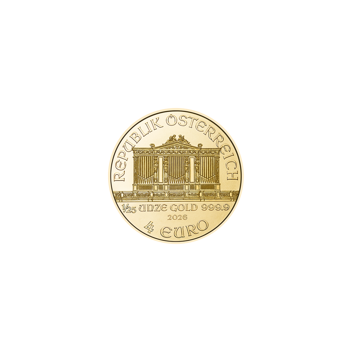 Moneta bulionowa Filharmonicy Wiedeńscy jest określana mianem najpiękniejszej monety bulionowej; uważana za arcydzieło sztuki numizmatycznej. Nazwa monety pochodzi od jednej z najbardziej uznanych orkiestr świata. Chętnie jest nabywana ze względu na wartość samego kruszcu, ale ceniona również przez numizmatyków – kolekcjonerów. Złote monety Wiener Philharmoniker są wybijane ze złota próby 999,9. Pierwsza moneta o masie 1/25 oz. ukazała się w 2014 roku dla upamiętnienia 25. rocznicy monety Wiener Philharmoniker.