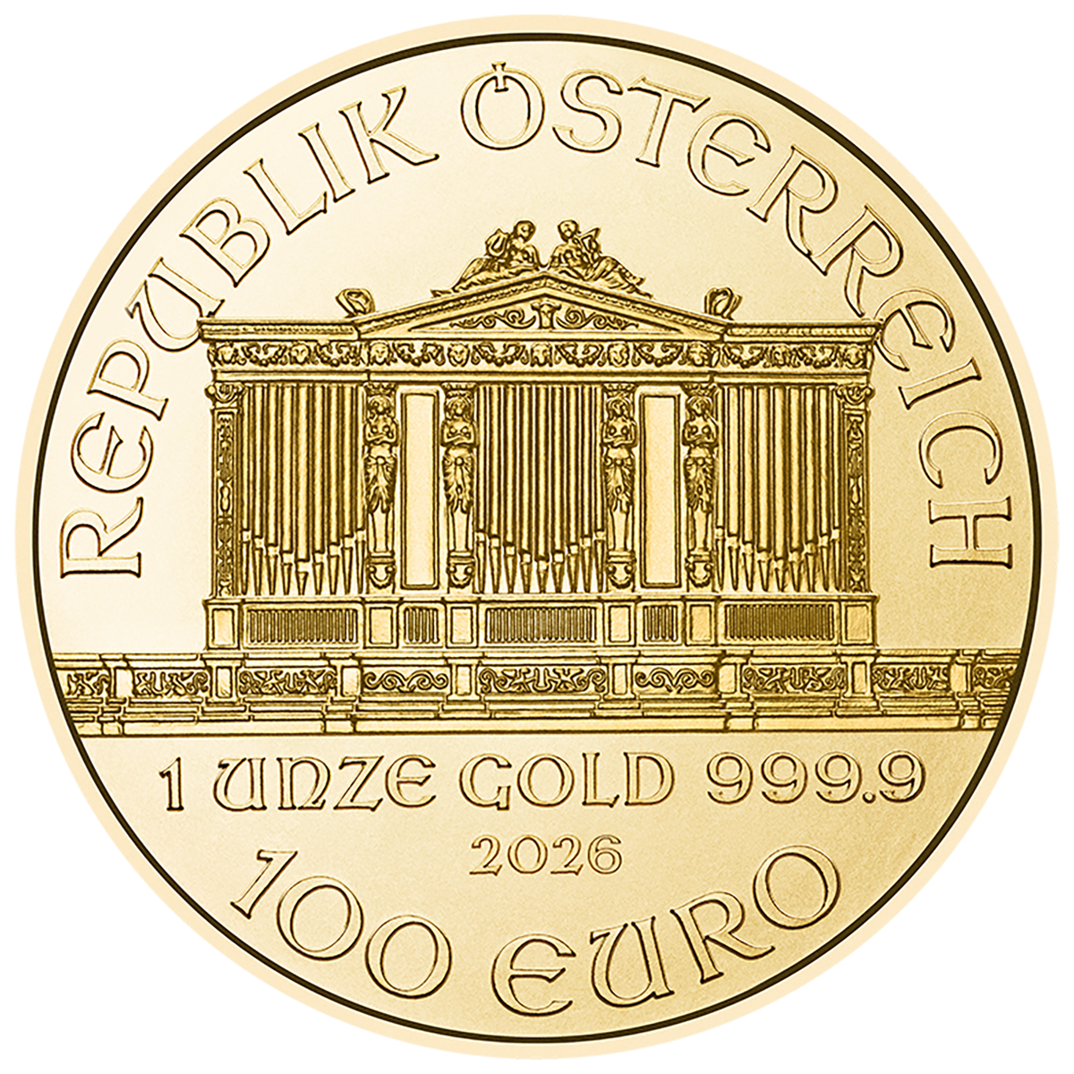 Filharmonicy Wiedeńscy 1 oz – Złota moneta bulionowa (Rocznik 2026)